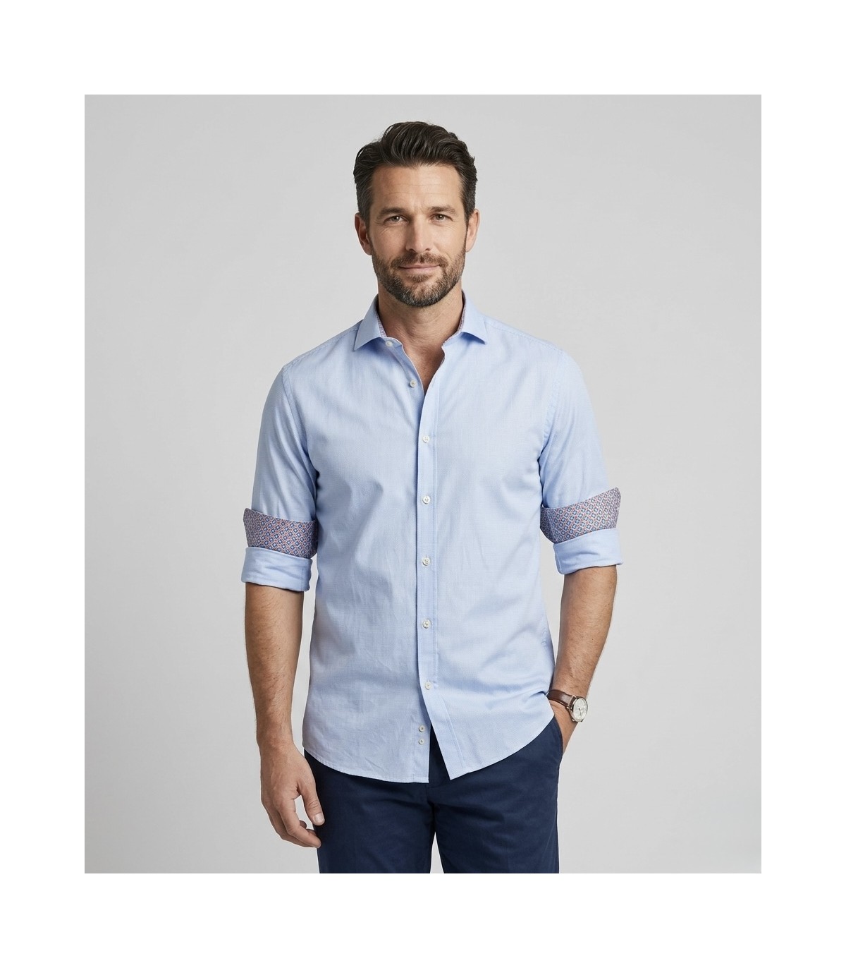 Camisa llisa amb estampat a punys i coll. Cotó 100%
